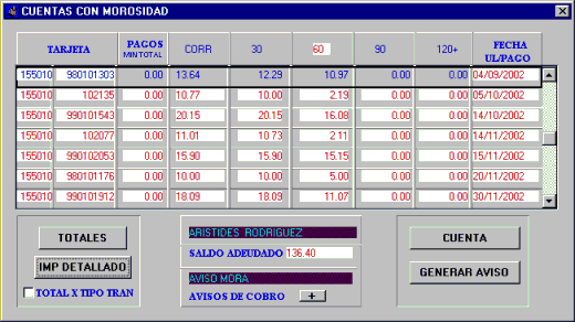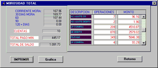 total x tipo de transacciones. Se muestra el total de la morosidad de 60 días. |