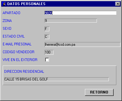 Datos Generales del Cliente. Correspondencia donde quiere que se le envíe la correspondencia . Información personal y de la empresa donde labora. Crearlo como fiador o codeudor de una cuenta.