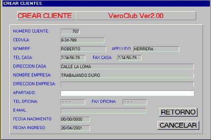 Luego de seleccionado el número le damos al sistema el vendedor, el número de cliente, el tipo de club y por